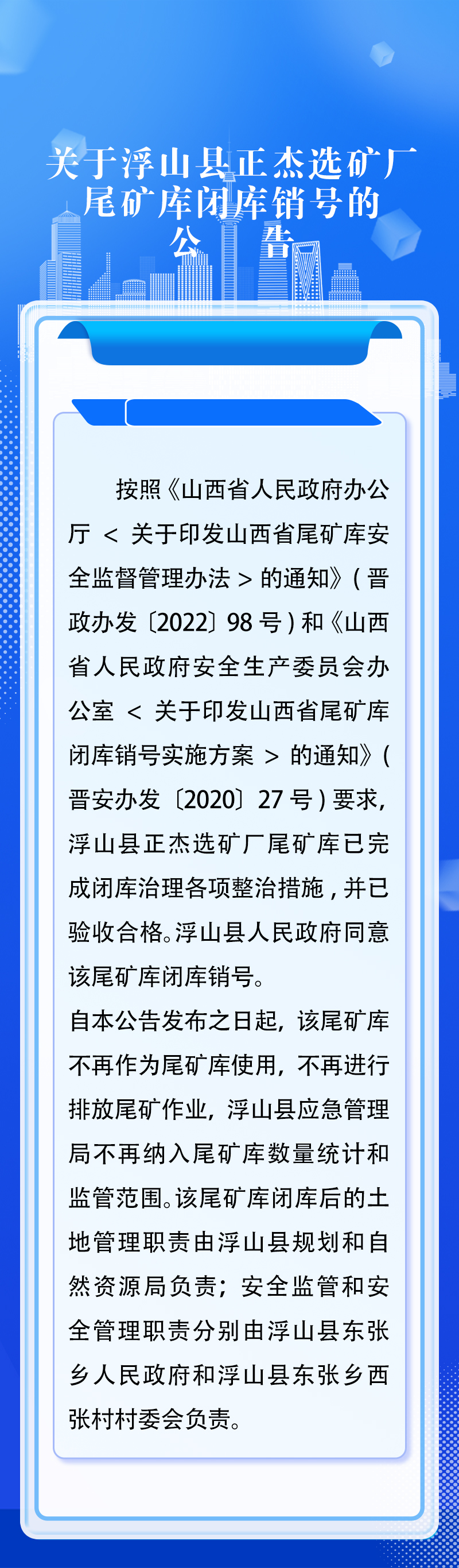 【圖解】關于浮山縣正杰選礦廠尾礦庫閉庫銷號的公告