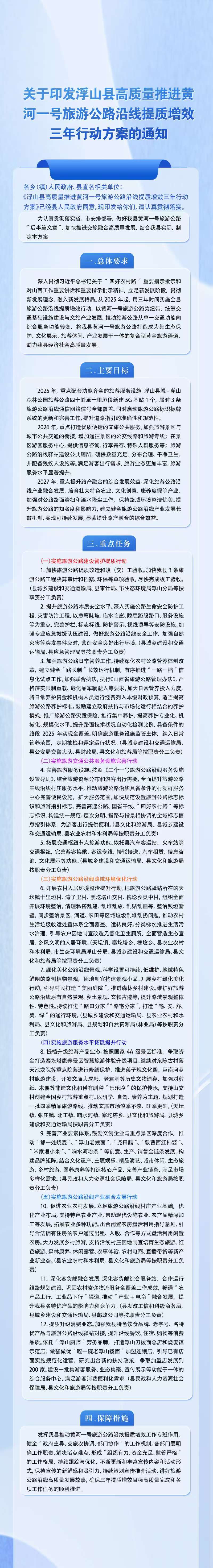 【圖解】浮山縣人民政府辦公室關于印發浮山縣高質量推進黃河一號旅游公路沿線提質增效三年行動方案的通知