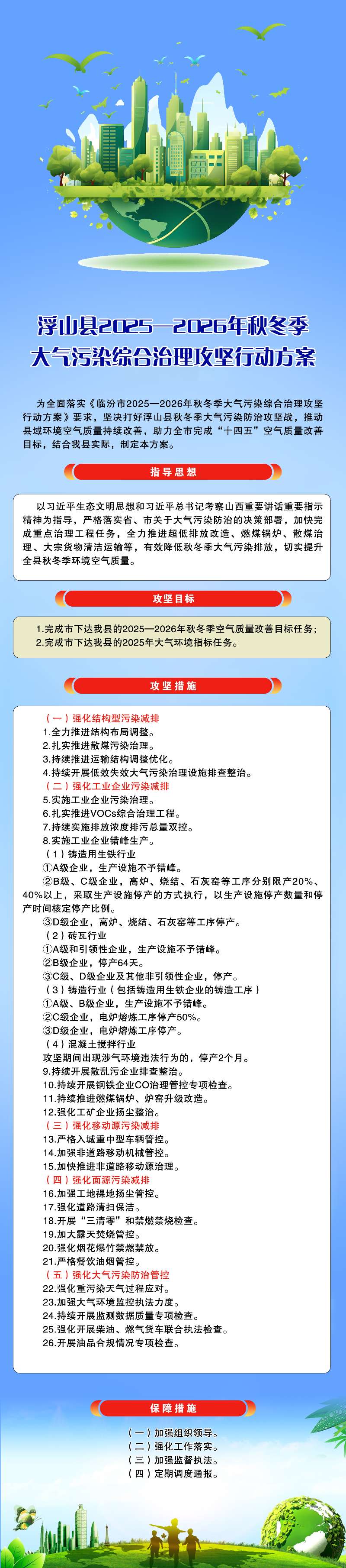 【圖解】浮山縣人民政府辦公室關于印發《浮山縣2025—2026年秋冬季大氣 污染綜合治理攻堅行動方案》的通知